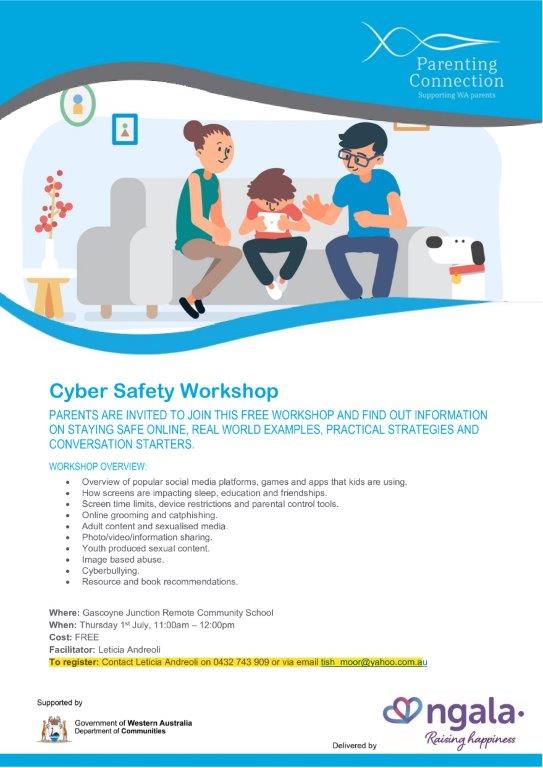 The Gascoyne Junction Remote Community School invites you to join them for a free workshop to find out information on staying safe online using real world examples and building practical strategies and conversation starters.